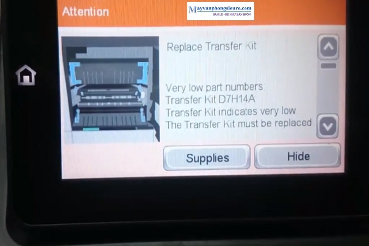 2. Không reset số lượng trang in. Các băng tải sẽ được lập trình khi in khoảng 125.000 ->140.000 trang thì máy sẽ thông báo “ Replace transfer kit”.
