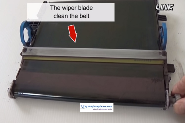 Bước 3: Mở nắp máy in và xác định vị trí của transfer belt. Phụ thuộc vào từng loại máy in nào mà có thể để nguyên hộp mực hoặc loại bỏ hộp mực trước khi tháo belt. Nên tham khảo các video hướng dẫn trên mạng sẽ giúp bạn đơn giản hoá việc tháo belt ra khỏi máy in mà không làm hư hoặc làm giảm chất lượng thiết bị.