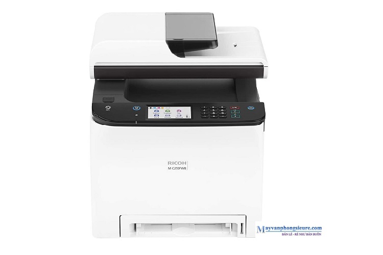 Máy in Ricoh M C250FWB đa chức năng với khay nạp tài liệu tự động ADF, cho phép người dùng có thể photo, scan, fax một tập tài liệu lên đến 50 tờ liên tục, giúp bạn giải quyết công việc nhanh chóng và hiệu quả hơn.
