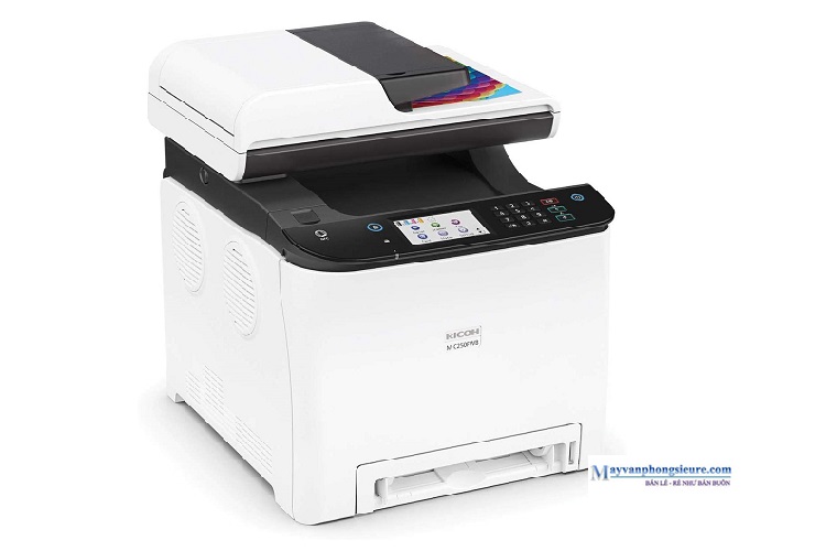 Máy in Ricoh M C250fwb là dòng laser màu đa chức năng: in, fax, scan, photo - kết nối wifi, tốc độ in lên đến 25 trang/phút, in 2 mặt tự động. Hộp mực dung lượng cao, giúp doanh nghiệp tiết kiệm chi phí trên mỗi trang in.