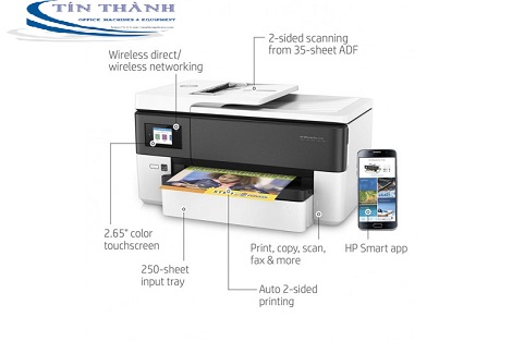 Máy in phun màu đa chức năng HP OfficeJet Pro 7720 giúp Quý vị có thể scan, copy một tập tài liệu lên đến 80 tờ, giúp giải quyết nhanh chóng và nâng cao hiệu quả công việc thay vì phải đặt từng tờ trên mặt gương để thực hiện công việc đó.