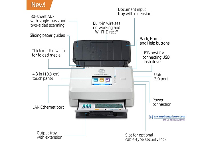 - Loại máy quét : ADF, Quét 2 mặt tự động, nạp giấy tự động (ADF 50 tờ)